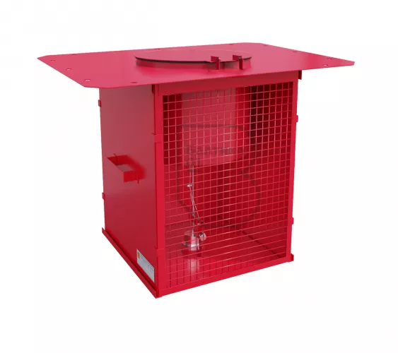 В нижней части корпуса имеется воздухозаборная панель, закрытая защитной сеткой. Входное отверстие генератора расположено на фланце, к которому присоединяется растворопровод стационарной системы пожаротушения. Установка и крепление пеногенератора на резервуаре осуществляется с помощью монтажного фланца.