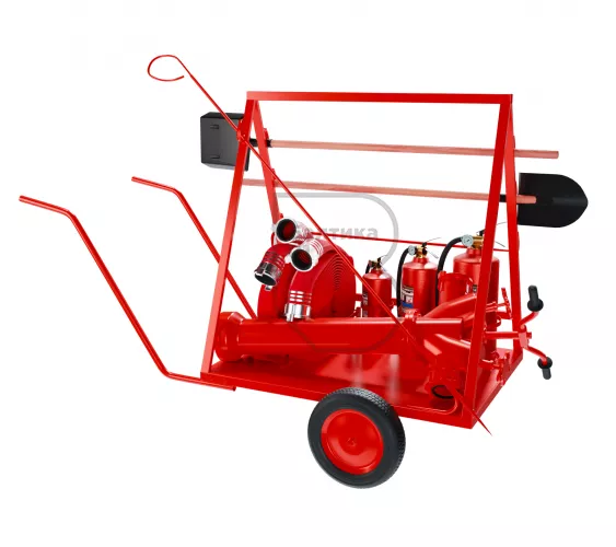 Все необходимые для тушения средства могут быть размещены на тележке и ее элементах.