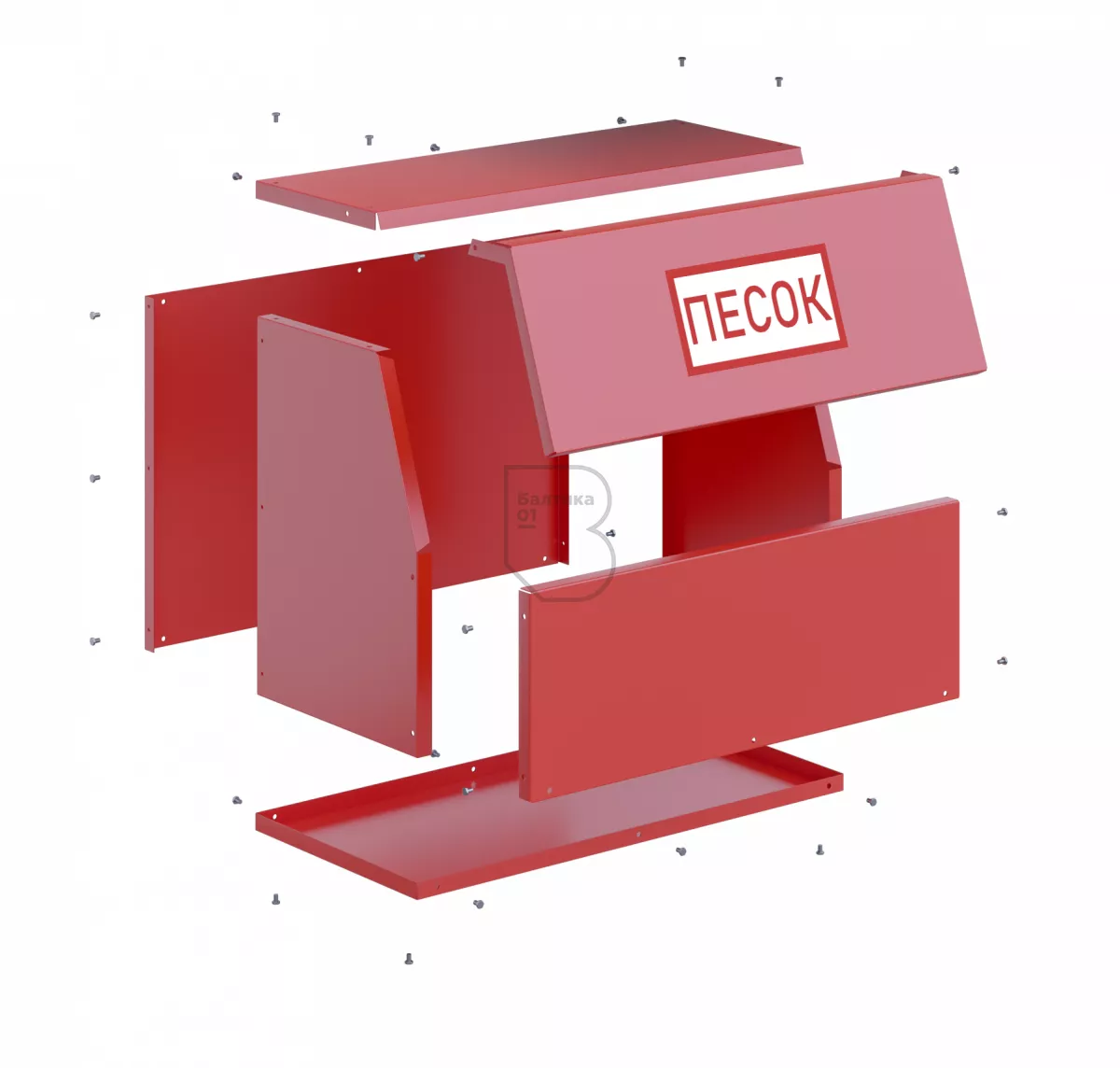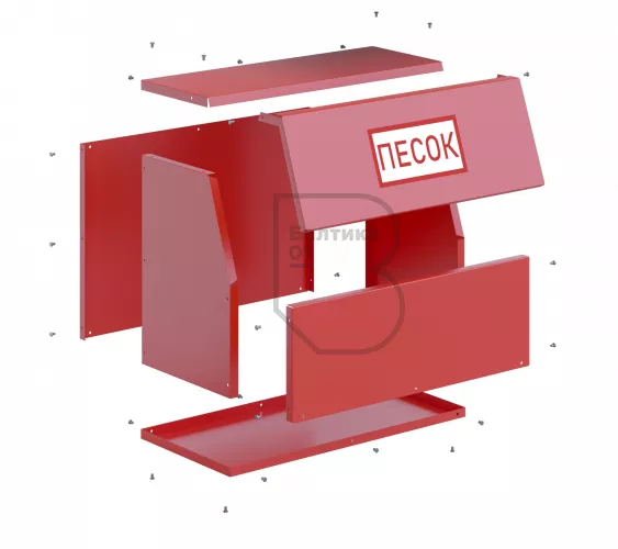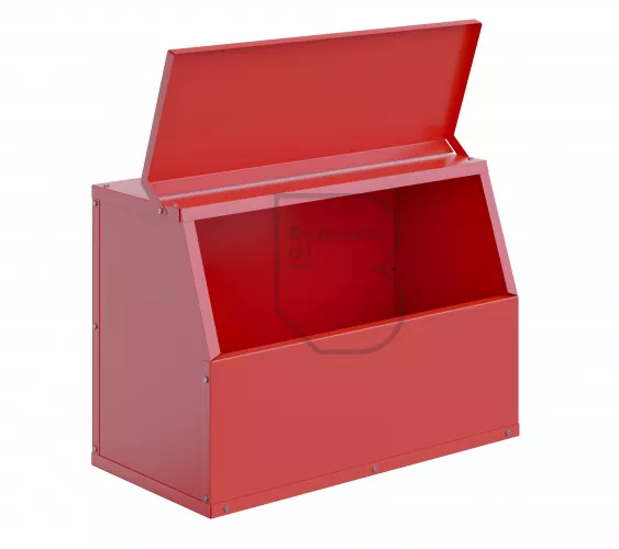 Ящик для песка 0,2 м3 сборно-разборный - предназначен для хранения пожарного песка, используемого для ликвидации возгораний и в тех местах, где существует угроза разлива легковоспламеняющихся и горючих жидкостей. Ящики применяются на автозаправочных станциях, различных предприятиях и складах.