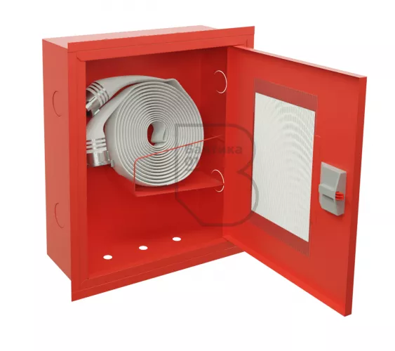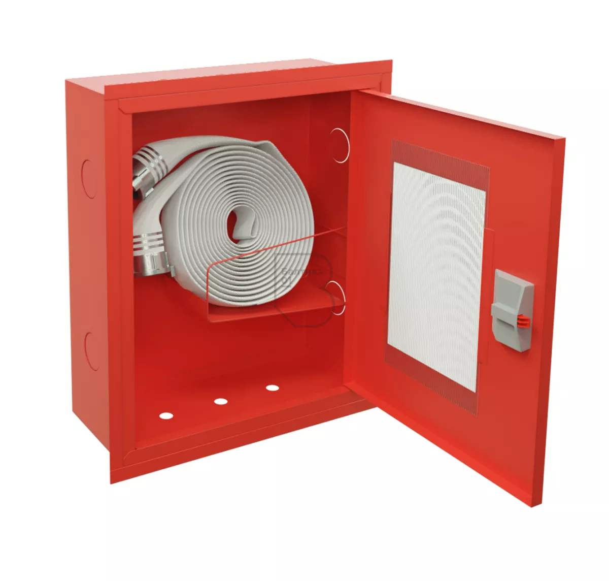 Дверца пожарного шкафа открывается на 160 градусов. Имеет запорное устройство в виде пластиковой защелки. На дверце имеется смотровое окно со вставкой из поликарбоната.