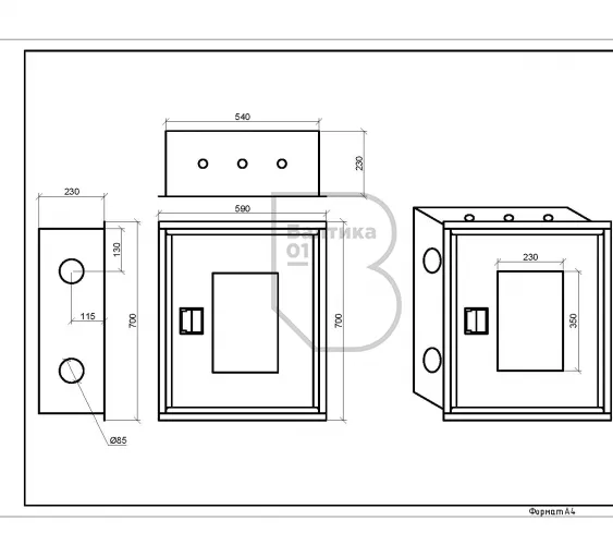 - Габаритные размеры (по рамке), мм700 х 590 х 230