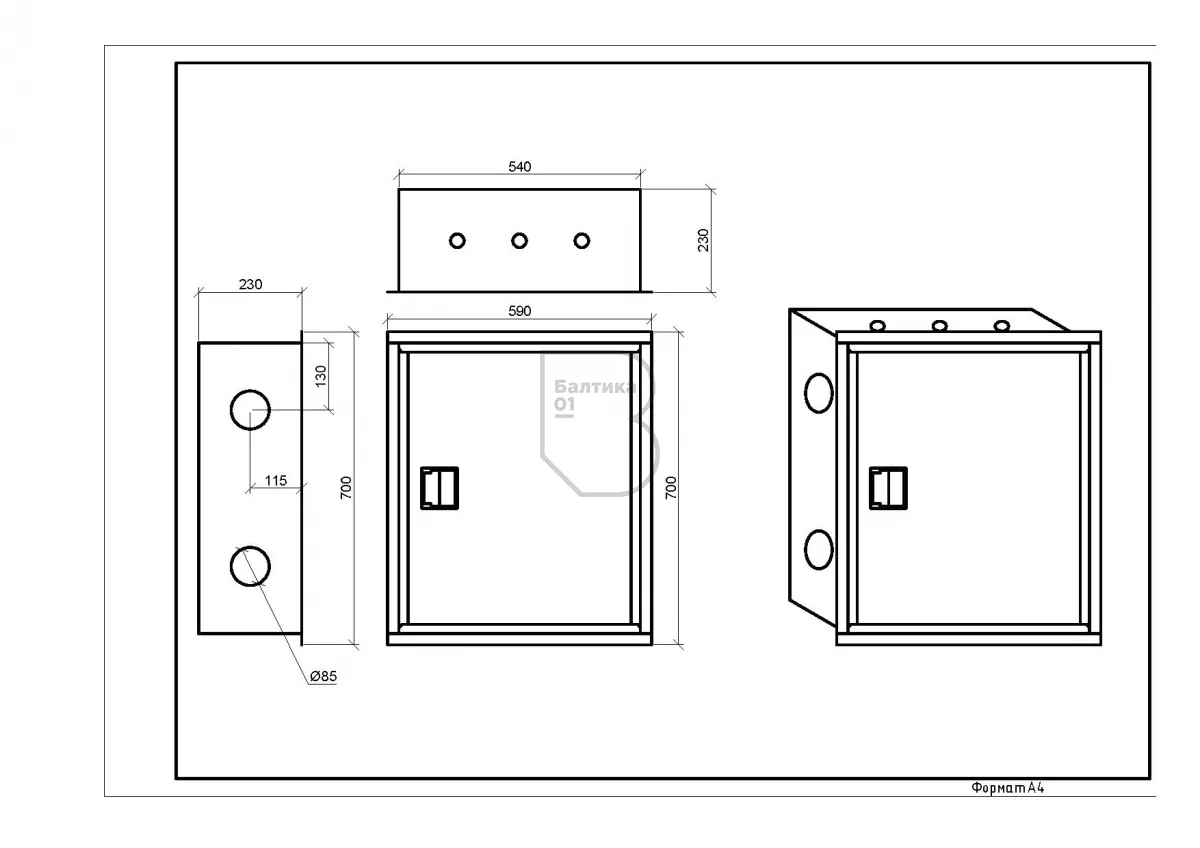 - Габаритные размеры (по рамке), мм700 х 590 х 230