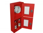 Дверцы пожарного шкафа открываются на 160 градусов. Имеют запорное устройство в виде пластиковой защелки. На каждой дверце имеется смотровое окно со вставкой из поликарбоната.