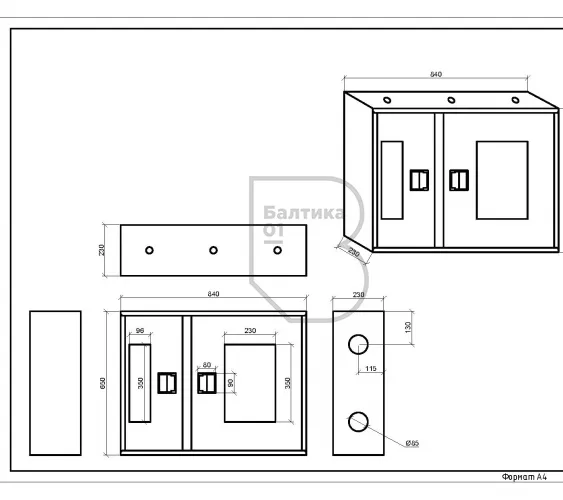 - Габаритные размеры, мм650х840х230