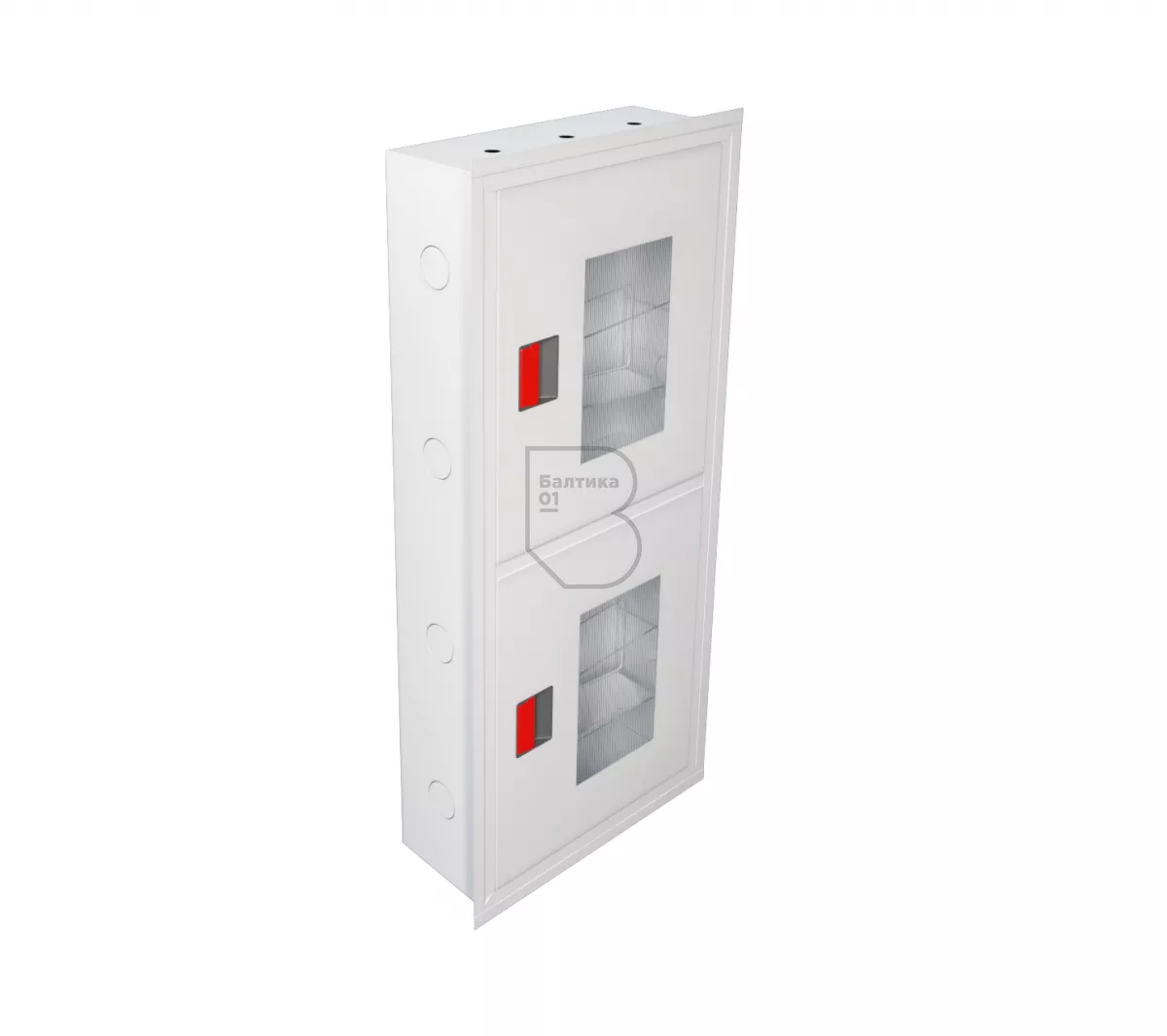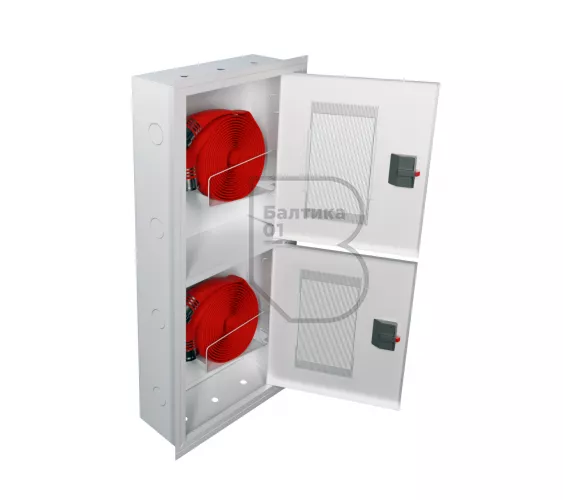 Дверцы пожарного шкафа открываются на 160 градусов. Имеют запорное устройство в виде пластиковой защелки. На каждой дверце имеется смотровое окно со вставкой из поликарбоната.